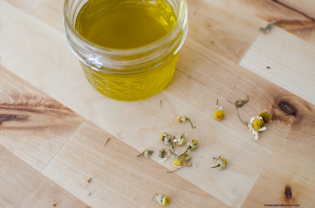 In a glass jar, measure out one ounce of herb to five ounces of oil (I like to use avocado or jojoba oil). Be sure that the oil covers all of the herbs. You may have to crush the herbs to get them to be submerged.