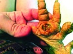 “Bumblefoot” is the term used to describe an infection on a chicken’s foot; it is referred to as “plantar pododermatitis” by medical professionals. Bumblefoot is characterized by swelling, sometimes redness and often a characteristic black or brown scab on the bottom of the foot. Left untreated, serious cases of bumblefoot can be fatal as the infection can spread to other tissues and bones. After serious cases have healed, the foot or toes may be scarred for life have an abnormal appearance. Your chicken may never walk normally again. I have seen cases from other flocks where the infection had gotten so bad the whole foot of the chicken was swollen with infection.