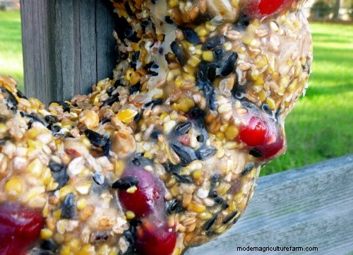 Quick Tip: If you decide to use coconut oil as the base, remember that coconut oil has a far lower melting point than other types of fats, so only serve the wreath on cold days!
