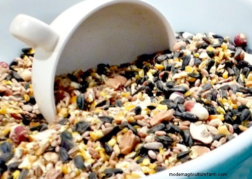8 cups of a mixture of scratch grains, seeds, nuts, cracked corn and unsalted nuts