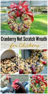 This wreath is pretty quick and easy to make, holds together well and the chickens love it! Have you been wondering can chickens eat cranberries? Now you know the answer. This is a great way to incorporate cranberries into their winter diet. Here’s how to make a wreath for your girls.