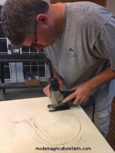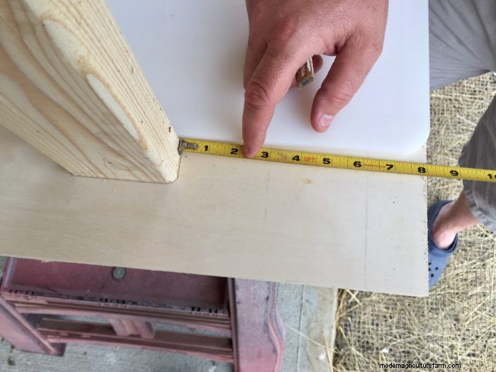 Next, cut your piece of plywood or counter-top to size. We used a scrap of Premium Birch Plywood leftover from another project. It is nearly an inch thick and very sturdy. The downside to this is it won’t stand up to water forever. A few coats of polyurethane will help, but if you have access to a piece of counter top that may be a better choice. Simply make sure you have the tools to cut through it and it can be sanitized. The bonus to this is you don’t need a cutting board, just cut right on the countertop.