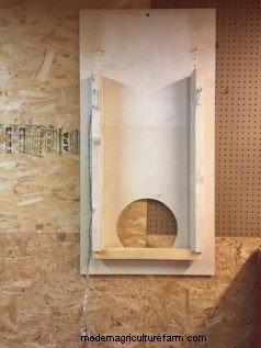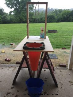 We had one more incarnation of the chicken cone before our final design. It was created using an old cabinet the previous owners of our house left behind. This design was more of a contained workstation, where everything could be done in one spot. Our only issue with it was that it was bulky and took up a lot of room for something we use pretty infrequently. Eventually, we dismantled it and went back to the drawing board to think of a chicken cone design that could be stowed away when not in use.