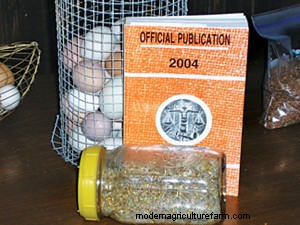 If you want to know even more about what you are feeding your birds I recommend “The Association of American Feed Officials’ Official Publication.” This publication defines the ingredients listed on poultry and other feed labels. If your layer ration lists soybean meal as an ingredient it means “the grindings of soy flakes after the extraction of most of the oil from dehulled soybeans.” Ground corn means the entire kernel of corn ground up. Dried bakery goods is “a mixture of breads, cookies, cakes, crackers, flours and doughs, which has been mechanically separated from non-edible materials.” (Association of American Feed Officials’ Official Publication, 2004) For further information about obtaining a copy of the American Feed Association Publication go to www.aafco.org.