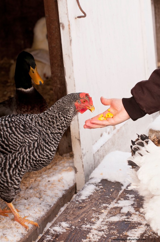 It’s always a good idea to let your birds out to roam when possible, even in winter, although they don’t like snow, the cold won’t stop them. For birds in confinement, any type of entertainment will be beneficial to keep them from just sitting around mourning the cold. Hay to peck and scratch in is always welcome, kitchen scraps, greens, bugs, new and interesting items like mirrors or roosting bars, and anything else you can think of will be appreciated and help greatly in getting them through the dreary days of winter up ahead.