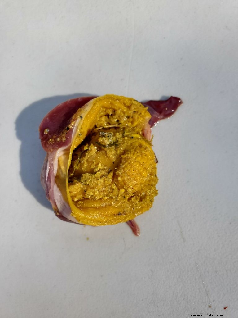 The chicken crop is located at the bottom of the esophagus and attached to the glandular stomach. The crop can easily be seen when it is full; look for a small bulge on the right side of the breast.