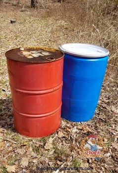 Drums and trash cans are a popular place to keep feed, especially for chicken feed storage. Be aware that feed can react with metal containers. If using steel, or a galvanized trash can, keep bagged feeds in the bag instead of spilling them into the steel container. Food-safe steel barrels have a non-reactive liner in them, usually made of porcelain or food-safe paint. These liners will protect your feed from reacting with the steel. Plastic or “Polly” barrels are best for avoiding reactivity. However, they don’t resist light as well as metal, and they don’t resist chewing by rodents as well as steel.
