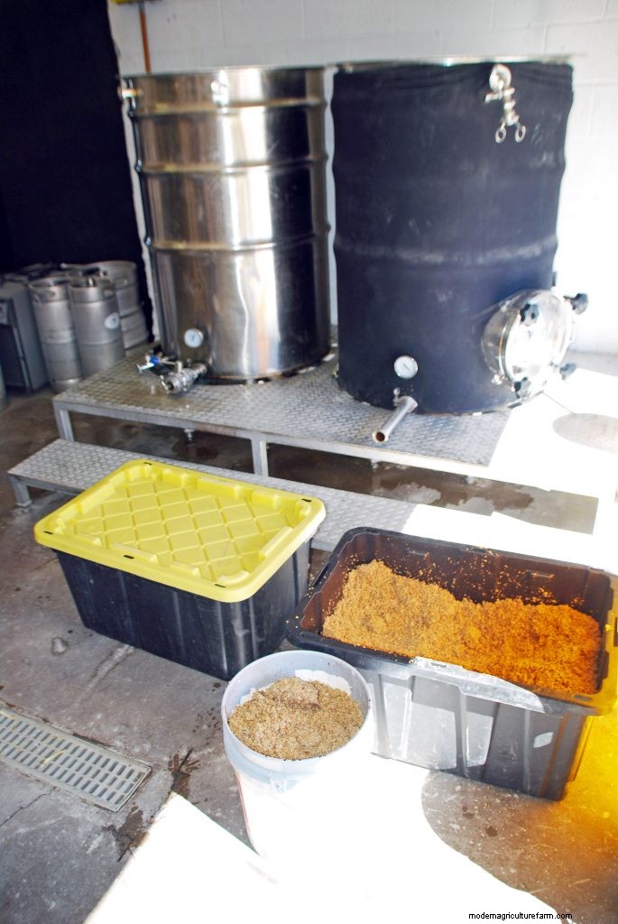 In the usual brewing process, crushed malted barley, sometimes with other grains like wheat or oats, is steeped in hot water to convert starches to sugars, for later fermentation enzymatically. The sugary liquid (called “wort”) is then strained and boiled with hops to create the liquid fermented into beer, with damp, slightly sweet grains as leftovers. These grains, termed “brewery spent grains” or “BSG” in the industry, can be fed to horses, cattle, swine, or chickens.
