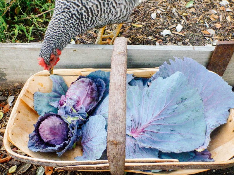 I like to hang a head of cabbage inside the run and let the ladies bop it around like a tether ball. By the end of the day, all I’m left with is a half-eaten stalk and a piece of string.