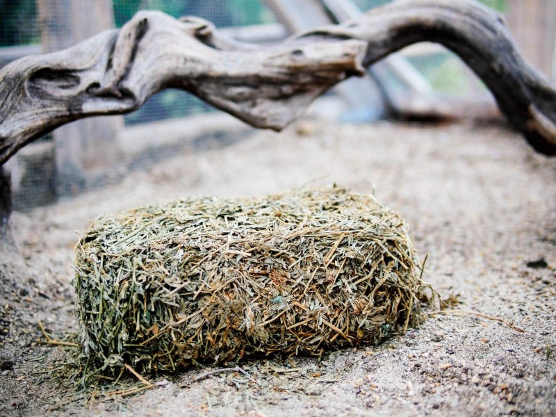 If you can’t find a mini bale like this and you can’t haul an entire bale home, you can reap the same benefits by adding alfalfa pellets (usually sold as rabbit food) to their regular feed.