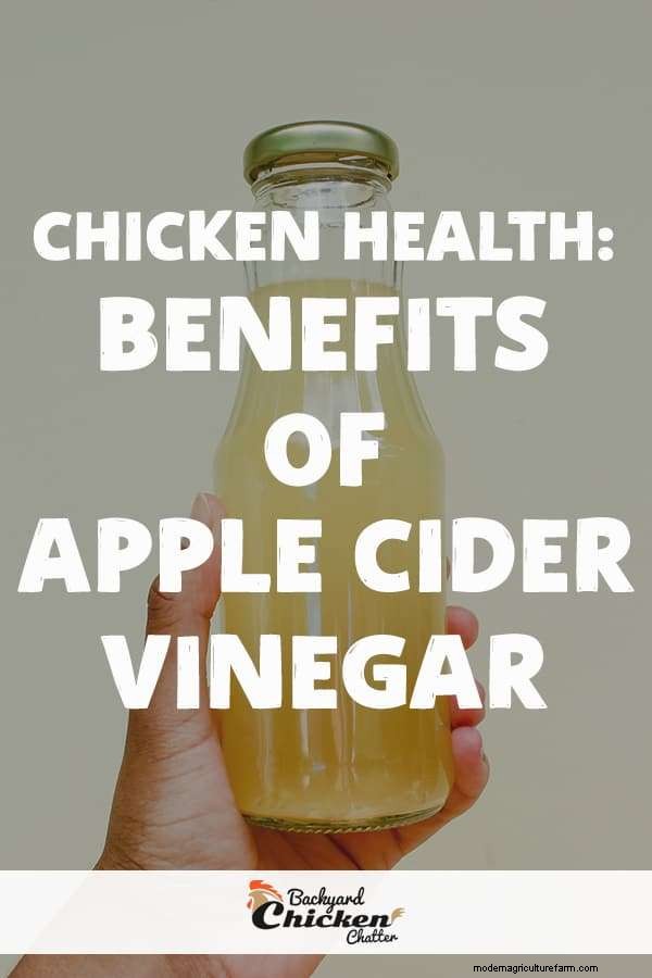 Apple cider vinegar is an acetic acid that comes with many benefits to the overall well-being of chickens. It can be purchased in many grocery stores. Some of these benefits include respiratory problems, preventing heat stress, relieving pain, treating diarrhea, treatment for lice and mites, keeping water fresh and many more.