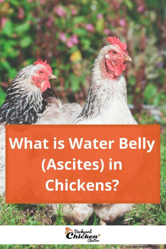 Ascites is the proper term for what we know as water belly in chickens. Its primary cause is heart failure and hypertension. When these diseases go on too long, it eventually causes liver damage that, in turn, leaks fluids. Once the liver starts to leak, the liquid has to go somewhere. And it usually ends up in the abdominal cavity, aka water belly.