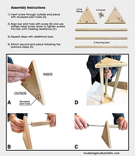 Ladder roost shapes allow for larger flocks to roost peacefully. They are also a way to make roosts for a mixed flock. You could put smaller perch rungs higher up for bantam chickens and wider rungs for older birds at the bottom. The possibilities are endless when creating your own chicken roost.