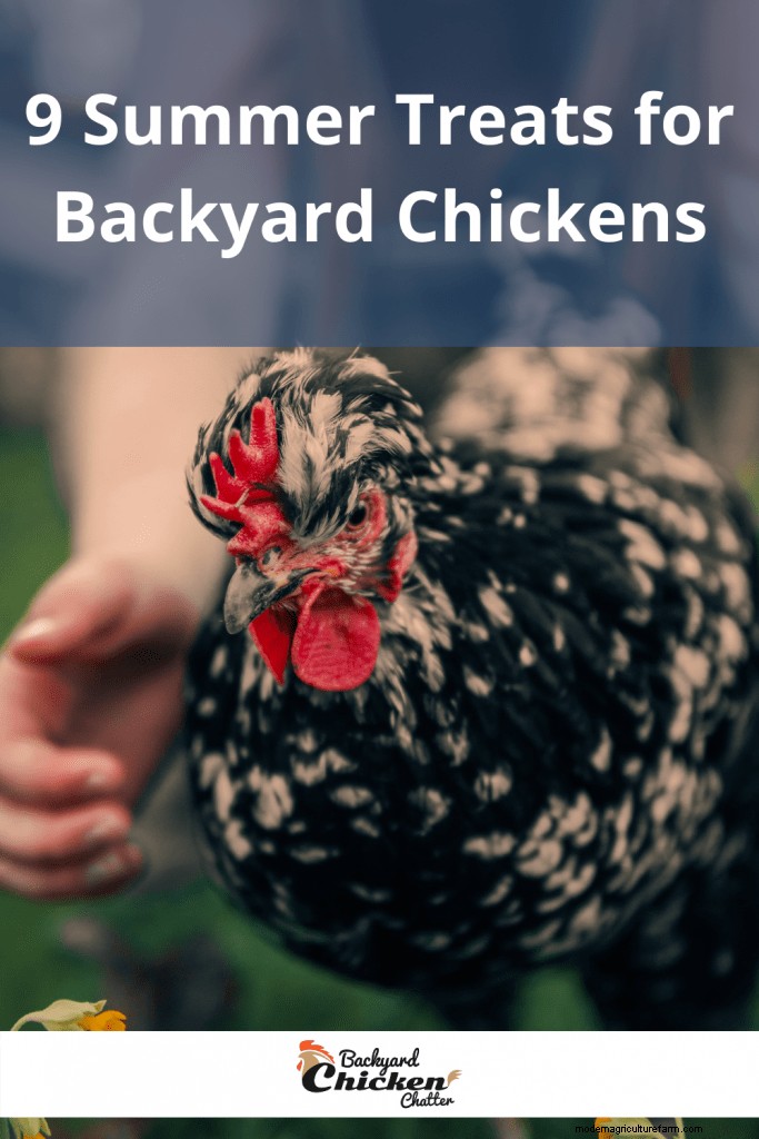 What kind of treats can you give chickens in the summer? One of the best cold treats for chickens is frozen foods. Fruits and vegetables have the antioxidants and water your hens need to stay hydrated. And when you stick them into the freezer for a few hours, they make an even tastier treat.