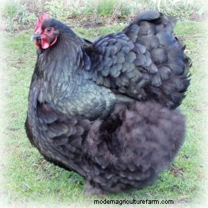 This breed is very similar in temperament and size to Lavender Orpingtons only that they are solid black. More often than not you may see their feathers shining with a violet-green sheen when in the sunlight.