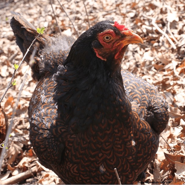 Buckeye chickens are a great choice if you live in colder climates, for example in the northern U.S. The males can reach 9 pounds in 16 weeks, and can produce up to 200 eggs per year. A decent dual-purpose choice if you want a steady meat and egg production all-year, even during the winter.