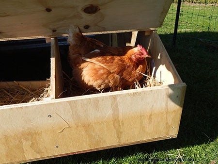 Nesting boxes aren’t actually for sleeping chickens, that’s what the roosting perches are for; the nest boxes should only be for laying eggs. It’s a good idea to have at least one nesting box for every four chickens so if you’re starting out with five or six chickens, two nesting boxes would be perfect.