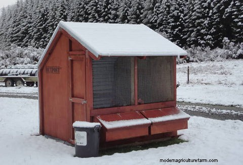 an enclosed rainproof chicken coop for sleeping and laying eggs