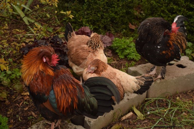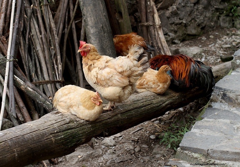 - Roosting on a perch — the preferred sleeping position among chickens.