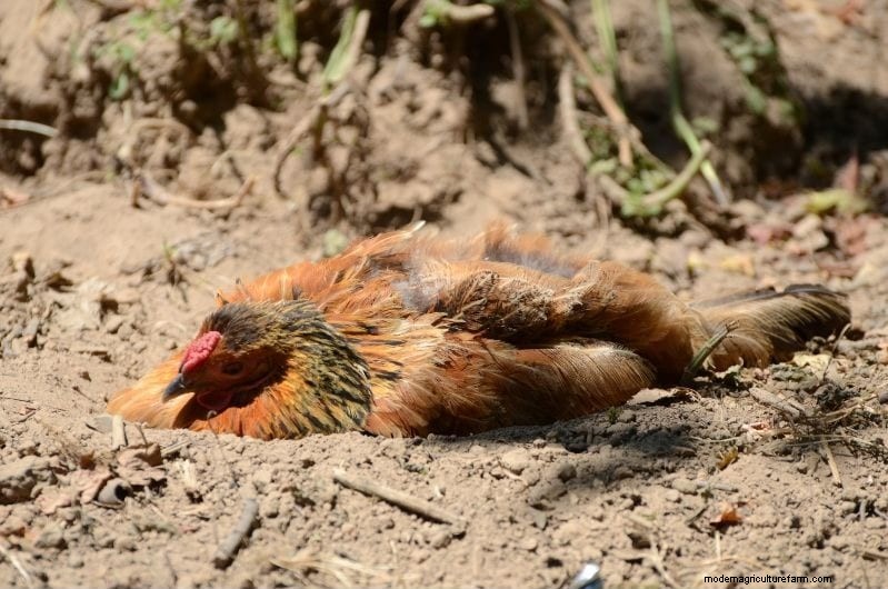 - Curled into a ball — the usual outdoor position when a chicken is napping in the dirt.