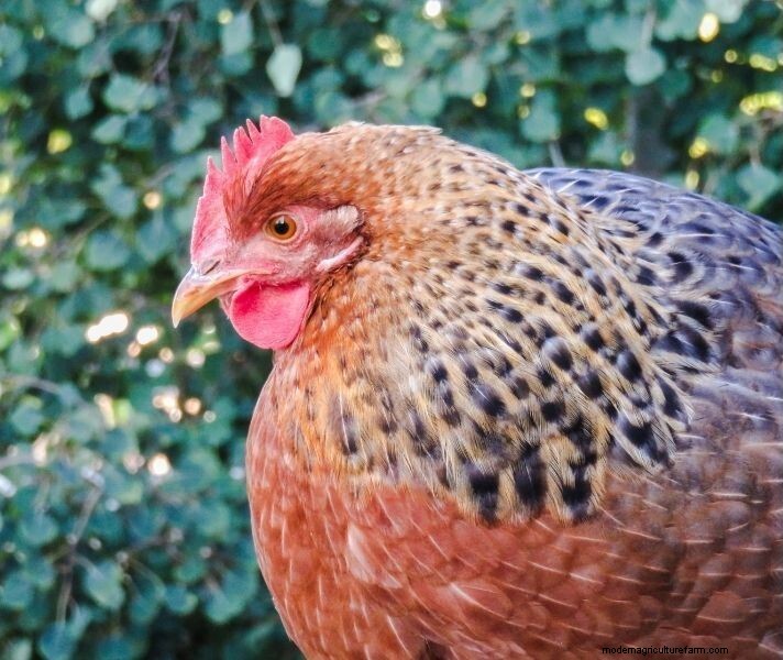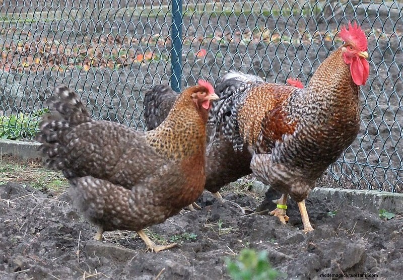 Want a winsome bird with plenty of colors? The Bielefelder is a relatively large chicken (weighing in at 10-12 lbs) with a single red comb, red earlobes, and wattles. They have orange-red eyes. Many chicken owners like Bielefelders for their auto-sexing abilities, which means that the chicks are born in two different colors.