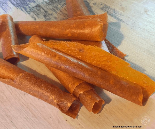 - Apricot Fruit Leather: Fruit leathers are another easy snack to make! Simply blend up the fruit in your food processor. You can add a little honey if you want to sweeten it. Line your food dehydrator trays with parchment paper or use the fruit leather trays designed to fit your dehydrator. Pour the puree in and dry at low heat (about 135 F) until it reaches the desired consistency and can be easily rolled.