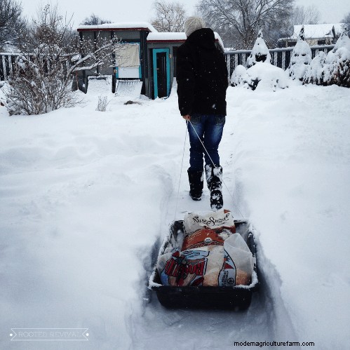 The deep litter method also works great during the winter and I highly recommend it! Also, depending how much snow your area receives, you may need to wrap your run with greenhouse plastic to keep the snow and drafts out. If you do this, be sure to leave openings along the top to circulate fresh air.
