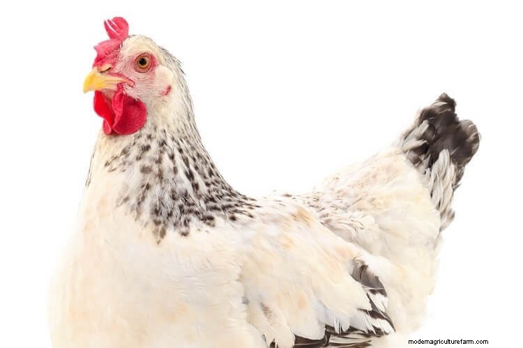 The Delaware is a medium sized chicken that has a deep and broad body.