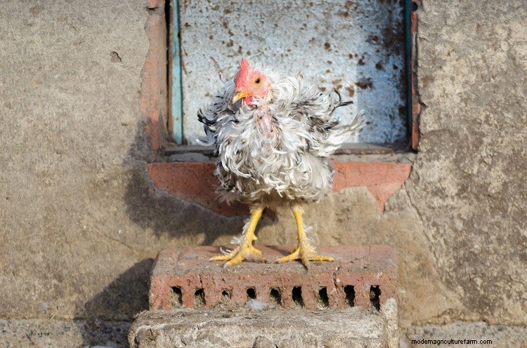- Over frizzle: Also known as curlies or frazzles. These chicks will have extremely fragile feathers which may break at a simple touch. They can also have bald patches, and worst of all, other internal genetic problems.