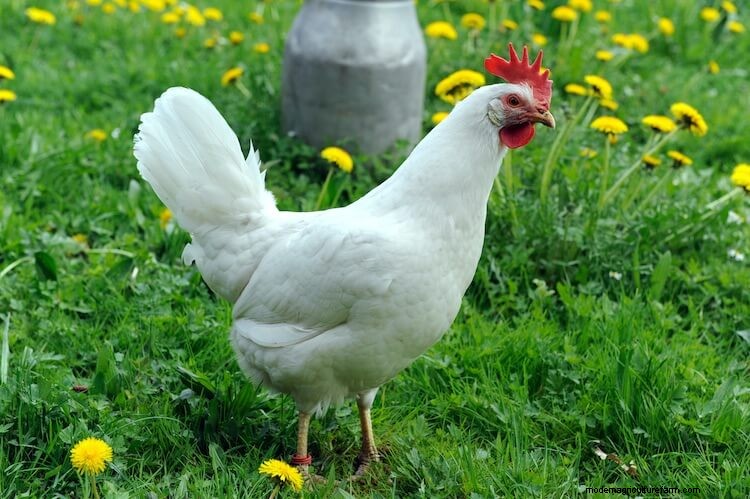 The White Leghorn is exactly what you expect when you hear “white chicken”.