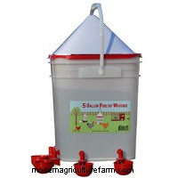 This premium chicken waterer has a 5 gallon capacity and four separate water stations. It is a sealed unit so the water will stay clean and is well built.