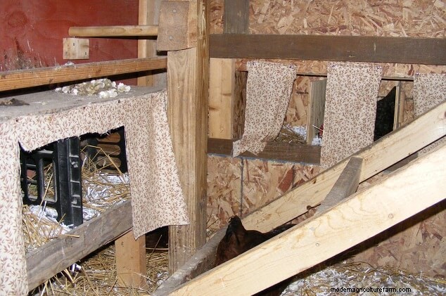 Having thick bedding in the boxes helps to prevent breakage and gives the hen a comfortable place to sit while she is laying that egg.