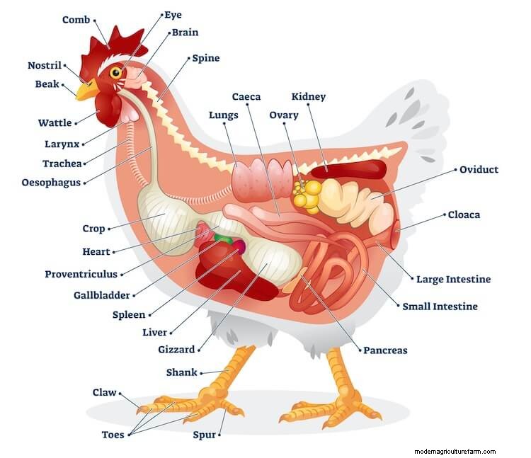 The anatomy of chickens is quite similar to the human anatomy in several ways, but totally different in others.