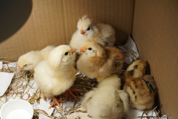 The heat can be turned off when the chicks’ brooder temperature is within 5°F of the ambient air temperature.