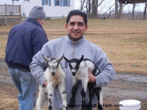 To complete the puzzle, Chuda Dhaurali and Tika Dulal, brothers-in-law and new immigrants from Bhutan, became the caretakers for the farm and also the lead farmers for the Goat Collaborative’s pilot project. Dhaurali’s family was expelled from their 139 acre farm in Bhutan when he was just 8, and he lived in a refugee camp in Nepal for 18 years before coming to the United States. Though it was against camp rules, he and other refugees smuggled goats in from time to time, foraging for them in the nearby woods. Since coming to the U.S., Chuda worked first as a dishwasher and then a cook at a local restaurant. But he never forgot his goats. As a reality check before taking on this new venture (which for now he does in addition to his restaurant work) Chuda spent a week training with Steve Reid, another project supporter, at Fat Toad Farm, learning about electric fencing and other unfamiliar aspects of goat farming in America.