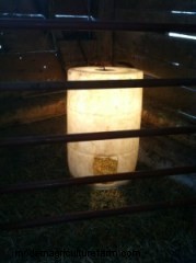 You will notice that even if the barrels happened to be knocked over, at no time will the bulb come in contact with bedding setting up the opportunity for a heat lamp caused barn fire.