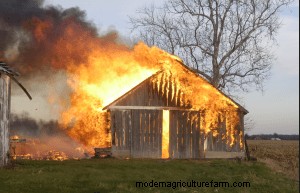 Thanks to the era of blogs, Facebook, Instagram, Twitter and Flickr, I’m seeing lots of postings of newborn lambs, kids and piglets being born in the midst of yet another polar vortex. In many of the photos, I’m also seeing something that causes me to cringe: an uncaged heat lamp in a barn, especially old barns–a recipe for disaster, a ticking time bomb, every farmer’s worst nightmare…a barn fire.