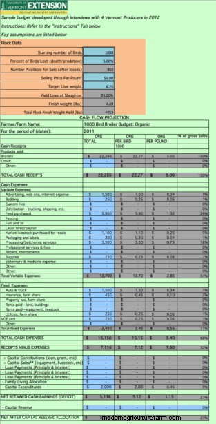 We did not include real estate payments or rental rates in this budget, so that is an additional item that might come from this net cash income. Since this model assumes this is the first year, we have included the set-up of poultry housing into this budget as a one-time expense that won’t necessarily re-occur in year two. We expect cash based performance will improve in year two for this reason.