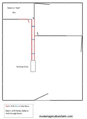 For some reason the industry has migrated toward the crowd alley starting to curve at the entrance from the tub or Box. The exit from a tub or a Box and entrance into the crowd alley should be straight for at least two mature cow body lengths. This allows flow to become established without the appearance of entering a dead end crowd alley. Keep it straight for at least 12 feet and then start a curve if warranted (ex. space is limited). Otherwise a long straight crowd alley works very well for processing cattle.