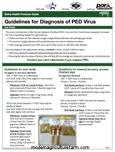 If you have sick pigs, here’s a Fact Sheet to help you diagnose them for PEDV. If your breeding herd has been diagnosed with PEDV, we need your help to stop the virus in its tracks. These fact sheets will tell you what to do depending on what kind of operation you have: