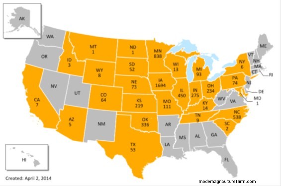The map below shows where the virus has been found. Early on, information about location of the disease was difficult to track because PEDV is not required to be reported on in the United States. Voluntary reporting by laboratories in the National Animal Health Laboratory Network (NAHLN) began in June 2013 with additional information being reported since November 2013. Age classes testing positive include suckling (less than one month old or still on sow), nursery (one month up to 3 months), grower/finisher pigs (3 months up to 8 months) and sows and boars (8 months of age and older).