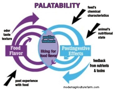 Simplistically, if an animal eats a particular food item and shortly after feels sick, discomfort, or in some other way “not good,” the taste of this food will be paired with the discomfort, and the animal will likely shy away from or become averted to consuming this food item. On the other hand, if a food item is consumed and the animal feels satiated i.e., no ill effects or feels “good,” the animal will generally pair the flavor of this food with the feeling of satiety and develop a preference for the food item; and the item will likely become part of the preferred diet.