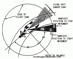 A good cattle handler understands two key principles: flight zone (the “bubble” around an animal that, if invaded by a handler, will cause the animal to move away) and point of balance (the point, usually around the front shoulder, at which pressure in front of that point will cause the animal to stop or back up, and vice versa). When a stockman is at the edge of the flight zone and properly balanced, only slight movements are needed to control the animals in a low-stress manner. To make cattle speed up, walk against their direction of travel; to make them slow down, walk with them. As you pass the point of balance, notice how each animal responds to your movement and position.