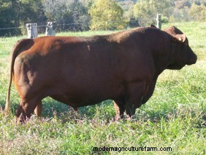 Another trait we were looking for was moderation in cow size. While many of our Beefmaster cross cows are in the 1100-1250 pound range, we would always have some that topped the scale at 14-1500 pounds. Since we don’t supplement our cattle, size has never been that big a concern to us, but we envision some day a larger commercial market for grass fed beef and wanted to have cows that would raise calves that could go either way, to the traditional feedlot or to the grass finisher. Finding a breed that would add these traits but allow us to retain the heat tolerance, early maturity and adaptability of the Beefmaster cows was tough. Then one day, about six years ago, my wife Judy read an ad for South Poll bulls for sale.