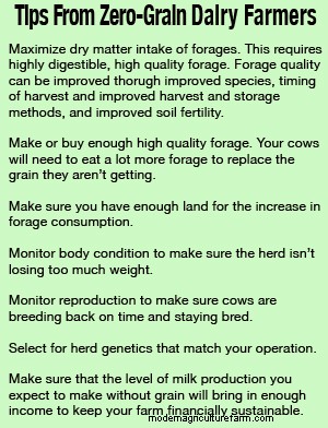 In response to increasing demand for grass-fed dairy products from cows fed only forages, some organic milk buyers are now paying a premium for this “Grassmilk”. In addition, many dairy farms direct marketing raw milk or farmstead cheeses are interested in zero grain dairying. But zero grain dairy farming is very challenging, so there are still a relatively small number of farms doing it successfully.