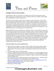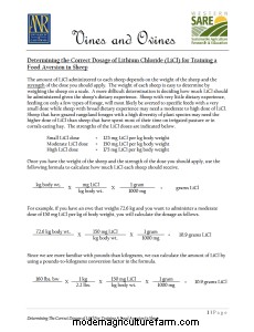 While the process for training sheep to have an aversion is simple, the steps must be followed carefully so you get the result you want and you don’t accidentally overdose and kill your animals. The Fact Sheet “Vines and Ovines: Training a Food Aversion in Sheep” outlines the steps and the important precautions you must take. Make sure your animals have access to as much salt as they want since proper doses of LiCl are not normally lethal unless animals are deficient in sodium. The prescriptions for using novel foods (foods your sheep have never eaten before) and the proper dose of LiCl are very important. If you’re considering this, be sure to download both the Training Fact Sheet and the LiCl Dosage Fact Sheet and follow them carefully.