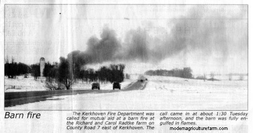 And then things took an unexpected turn. Rich was just getting off the phone after talking to a farmer about some Jersey’s he wanted to purchase. Carol had gone into the kitchen to turn off the coffee pot when he heard her calling to him, “Rich! The barn is on fire!”