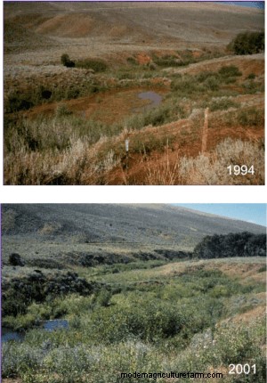 Training livestock to avoid sensitive areas and to use alternative sites gives land managers another option to maintain healthy riparian areas other than removing or fencing cattle from rangelands containing sensitive areas such as riparian areas. Changes in grazing management and training cattle to use uplands can have positive effects on riparian vegetation by resting it from grazing and allowing it to recover as shown in the photos included. If training livestock to use new areas is to be successful, the availability of food, water, salt and shelter at alternative upland sites and social factors must be considered as well as employing low-stress livestock training techniques for handling and placing animals in new areas.