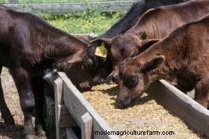 Introduce animals to foods they will be fed in the feedlot with their mothers in a familiar environment. Offer familiar foods in a new environment and animals eat it readily. Gradually increase food to allow animals’ rumens to adjust to new food high in energy.