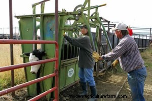 Move animals quietly through chutes using low-stress livestock handling techniques.